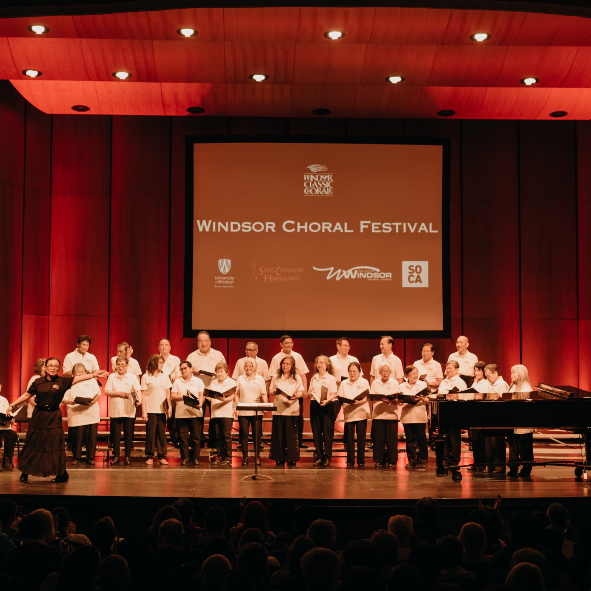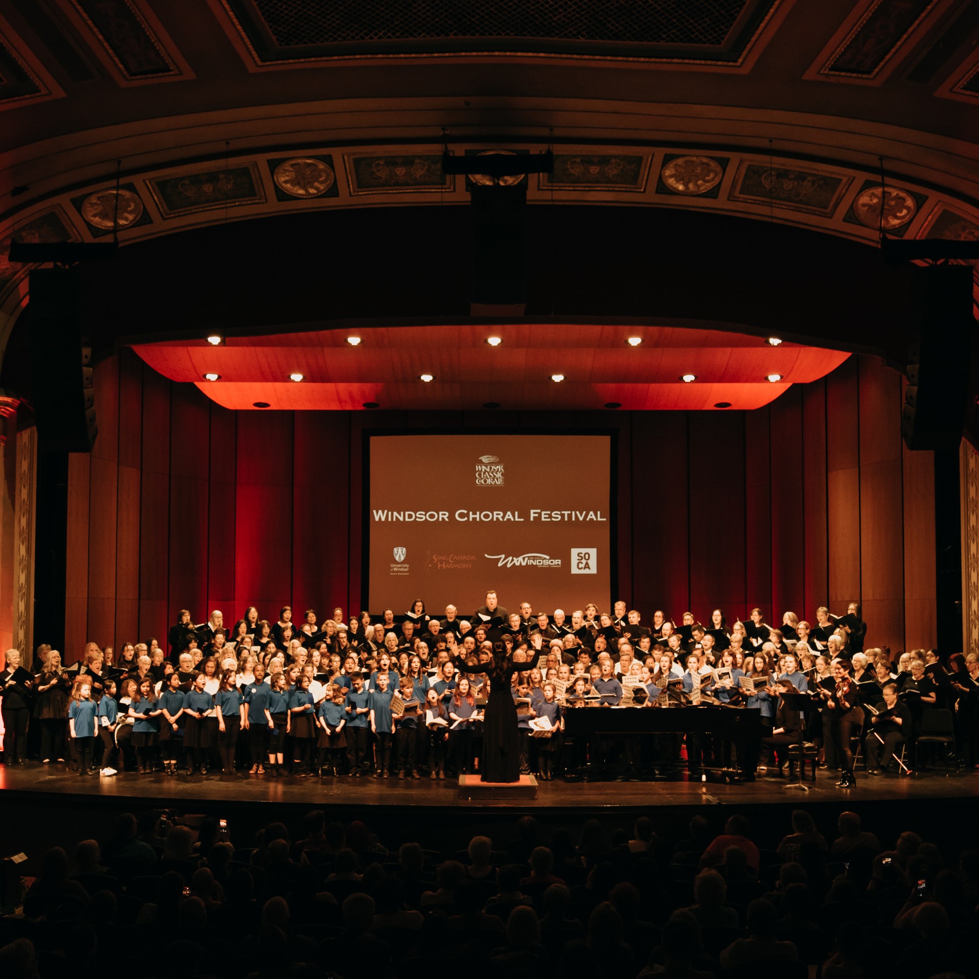 The Windsor Choral Festival is an annual event that brings together singers from across the Windsor-Essex region to share their love of choral music. The Festival offers free clinics that provide ongoing vocal training and education, fostering community through collaborative singing. With a clear mandate to promote Canadian choral music, the Festival highlights a Canadian work each year as the massed choir piece in its grand finale concert.